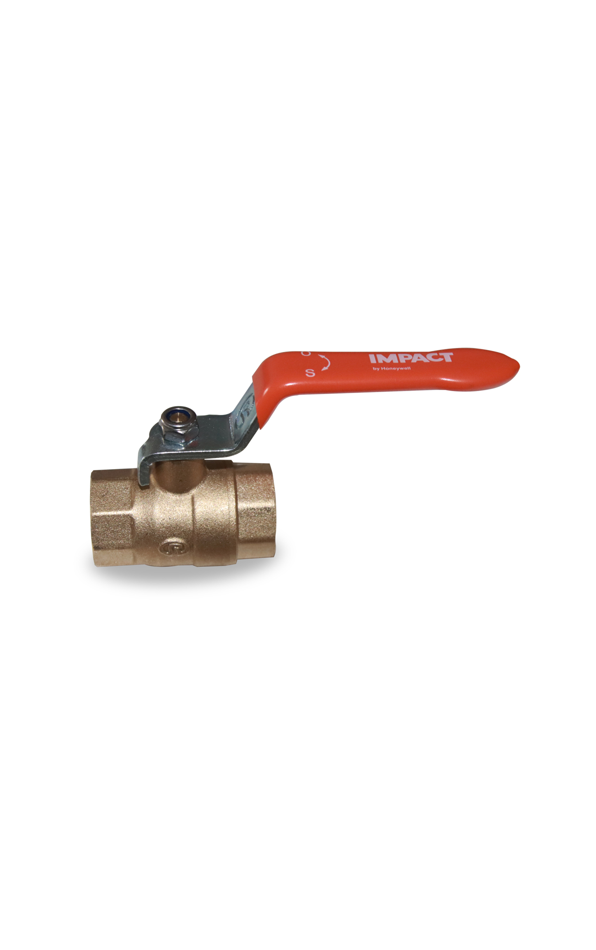 The IMPACT by Honeywell Forged Brass Ball Valves feature a full port design, BSP internal threads, and a chrome plated brass ball. They are designed to operate with a nominal pressure of PN25.